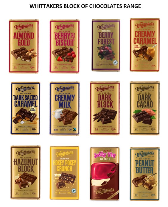 1 x Whittakers block of chocolate from their standard range* (10 choices, 250g)